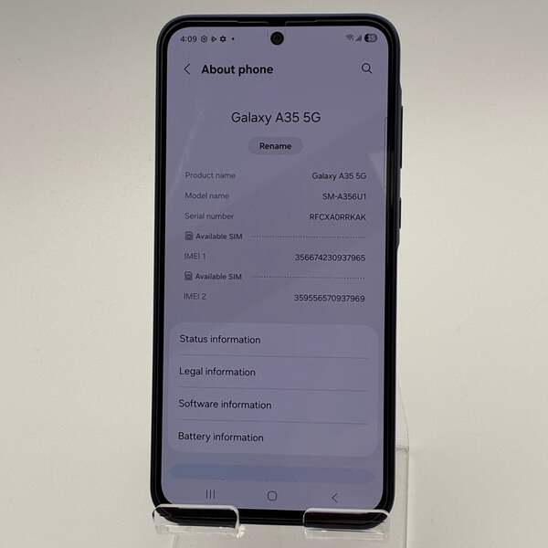 This Samsung Galaxy A35 5G is offered in Uséd condition and comes in Blue with 128GB of storage. It is set for any carrier and has a clean IMEI.