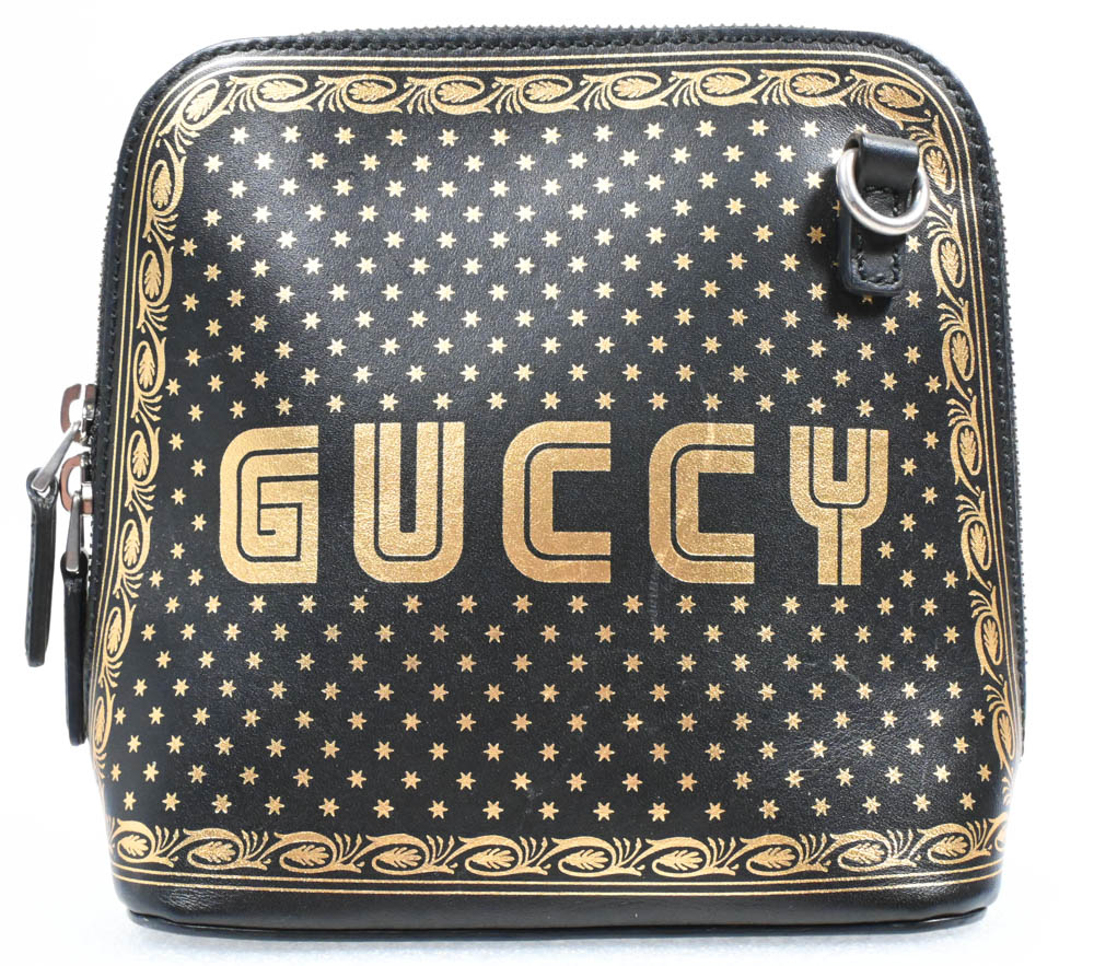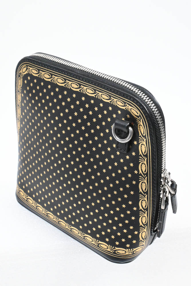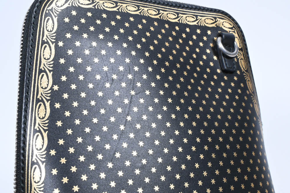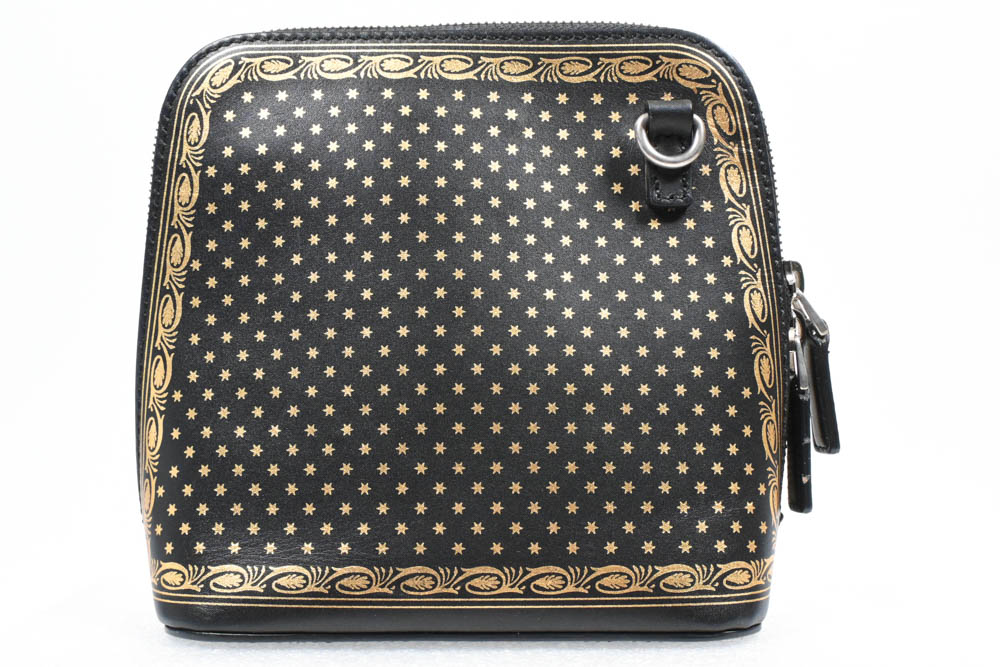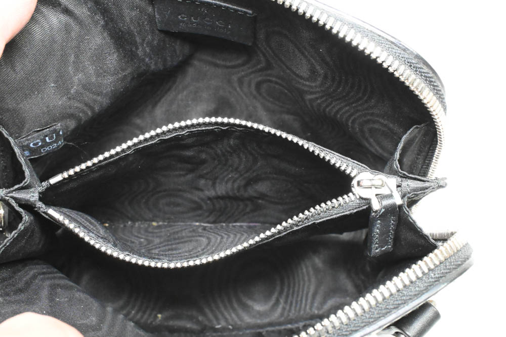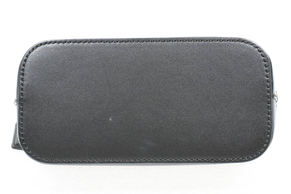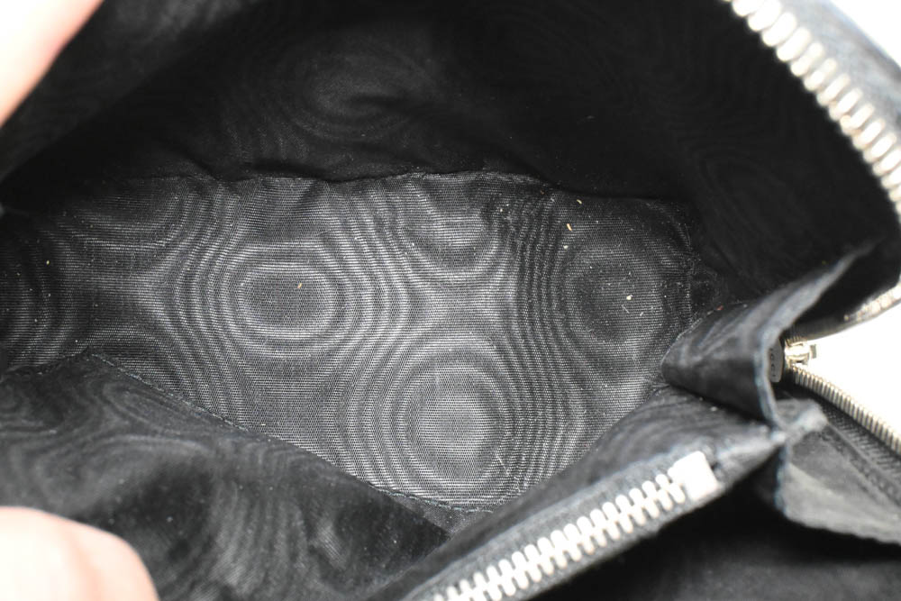 and some discoloration on the hardware. The interior has light debris. There are no readily visible rips/tears. Approx. 7" x 3" x 7" tall. Comes with adjustable strap.