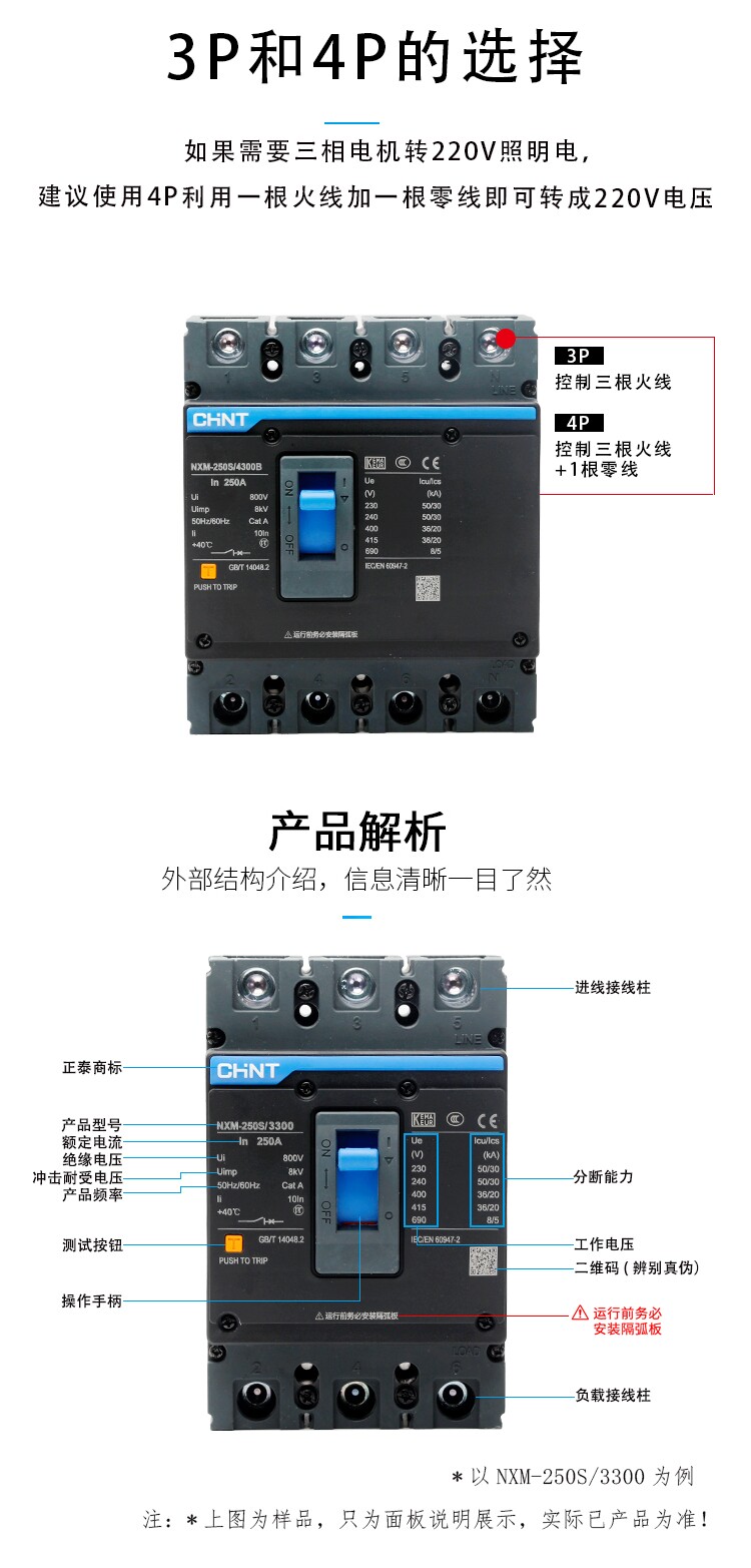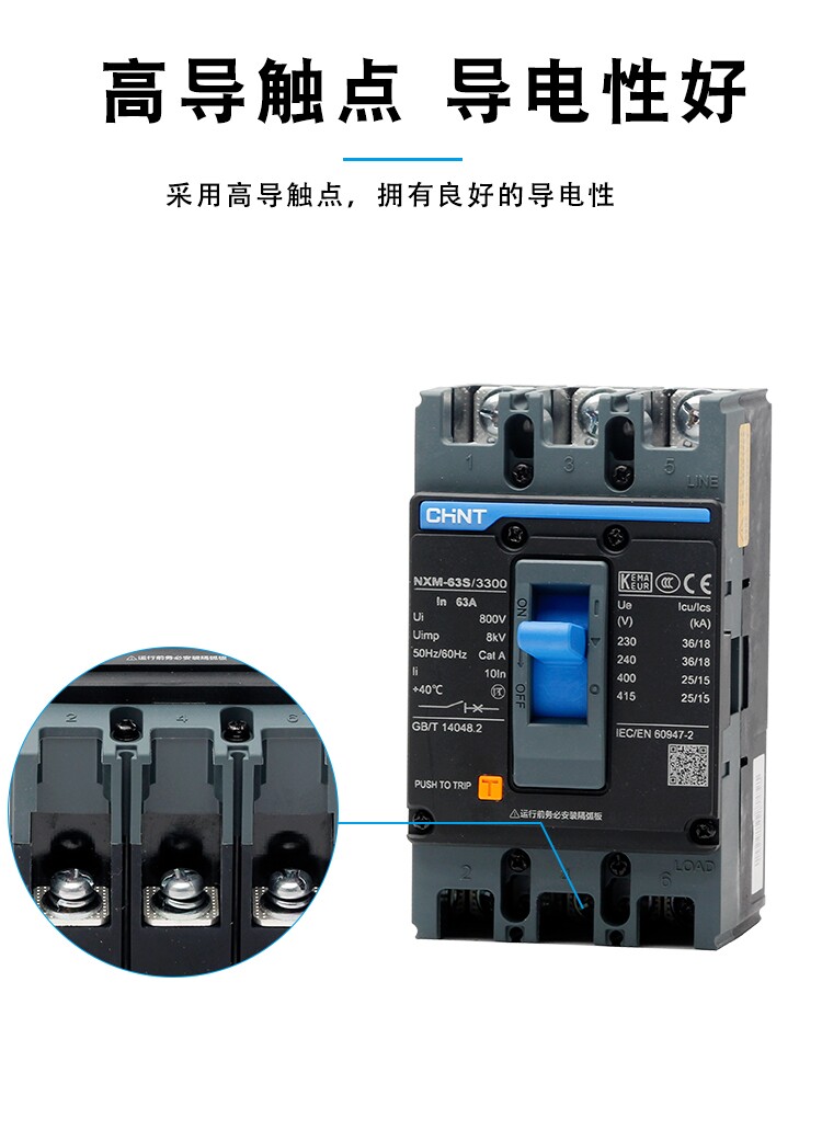 Chint NXM-63S Series NXM-63S/3300/4300B Leakage Circuit Breaker 3P 4P Brand