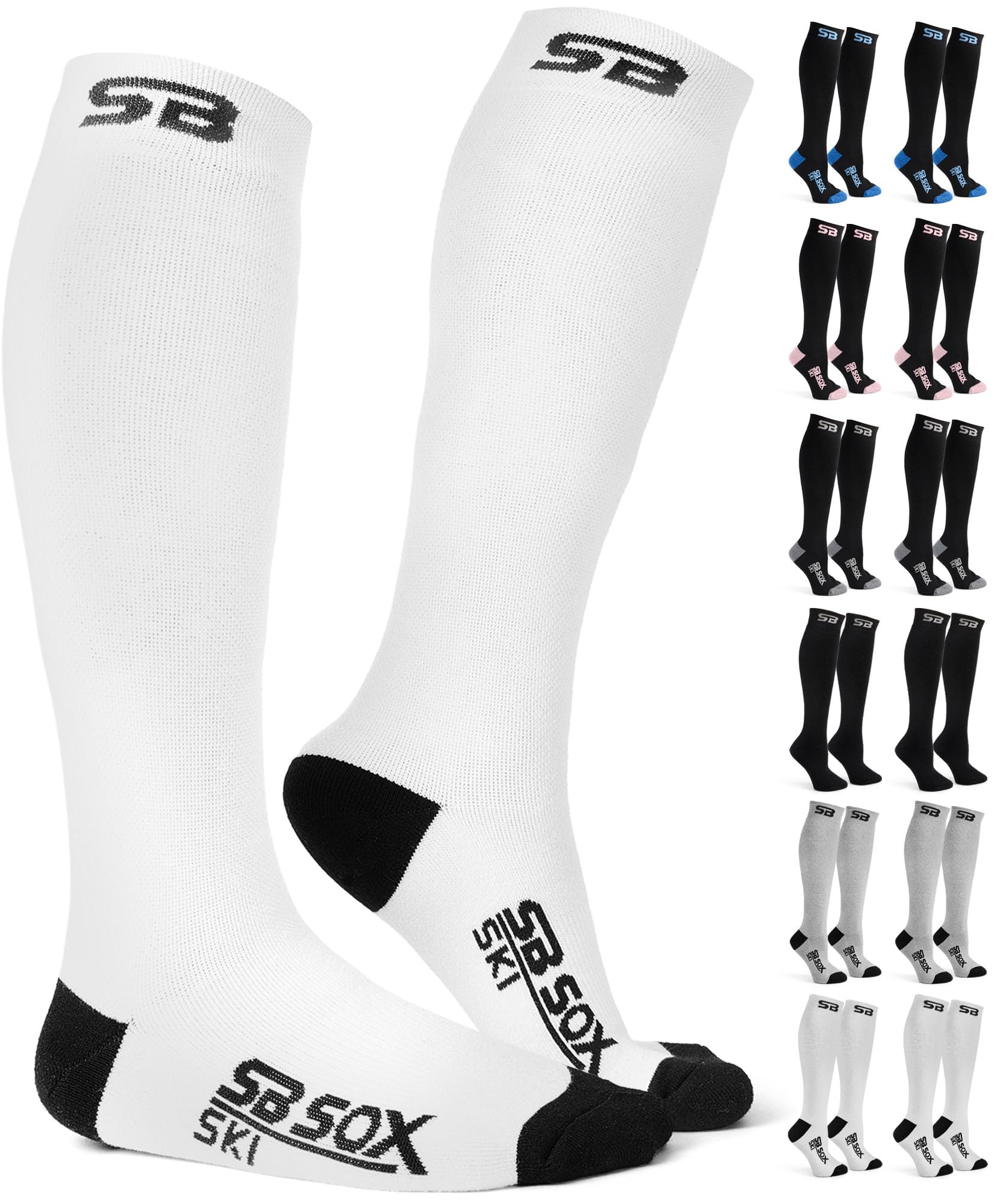 SB SOX Merino Wool Ski Socks for Men & Women (2 Large, White/Black (2-pack)