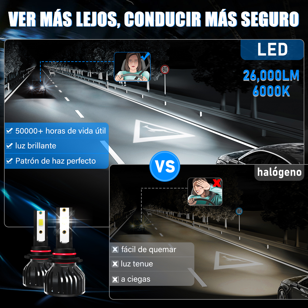 4.Color Temperature:6000K White.LED is 6000K White Light while the halogen is yellow light, as we know, yellow light is easy make driver tired when driving in the night. And the white light as the daylight, it is more comfortable for the eyes. And LED light will give you a more wider and longer sight. It can help you see the road sign more clear.