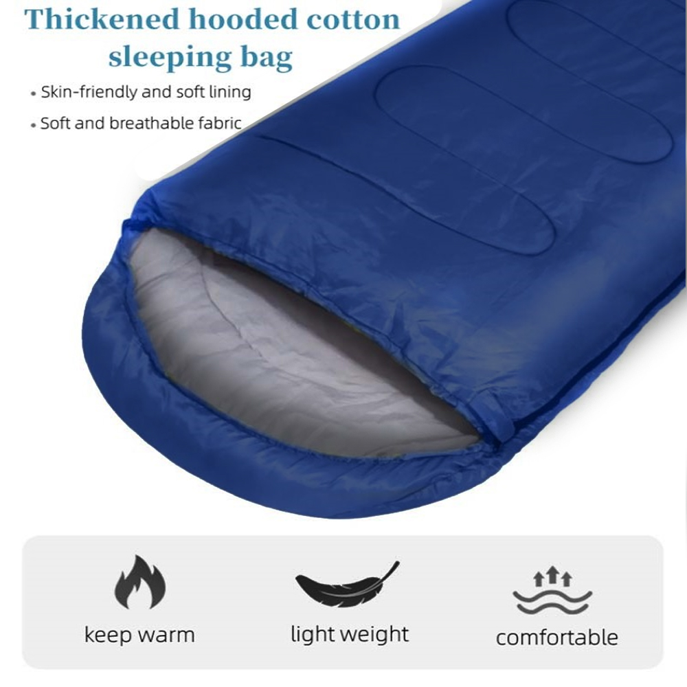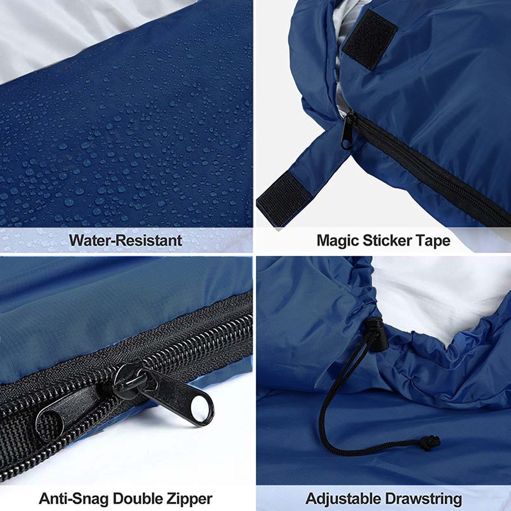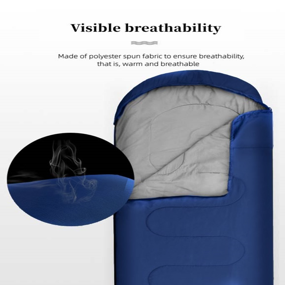 This sleeping bag is made of 170T tear-proof polyester and a waterproof shell, it can always keep the warmth inside of the sleeping bag. The inner fabric is made of soft and skin-friendly polyester, also suitable for babies.