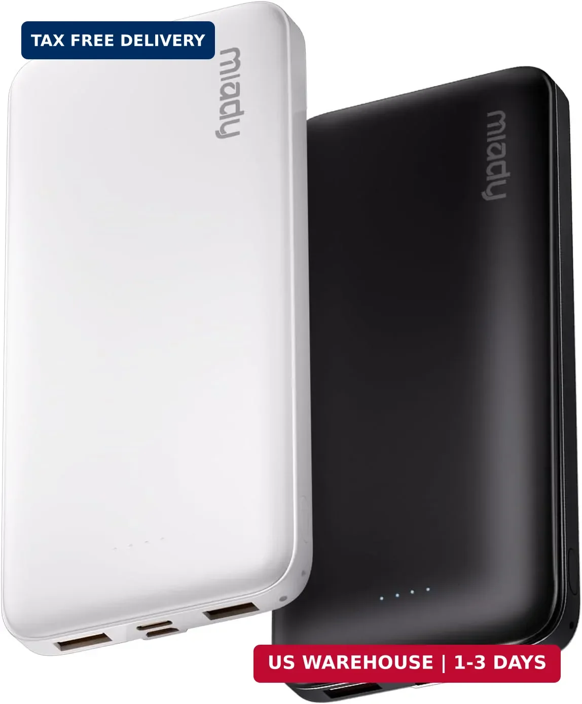 • What You Get: 2 * Miady 10000mAh USB Portable Charger (Black+White); 2 * USB-C Cable (Lightning cable is not included); 1 * User Manual. This charging bank comes with friendly customer 24/7 service. If you have any questions, please contact the Miady's store first for a solution, we will be sure to provide a satisfying solution for you. Your satisfaction is our greatest recognition and support.