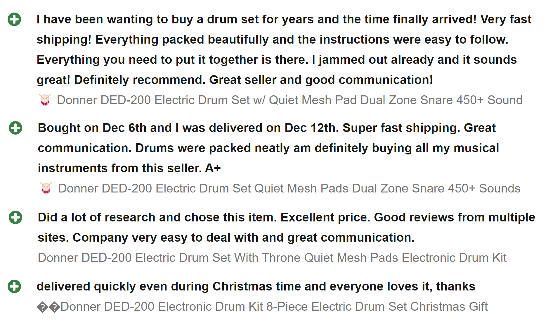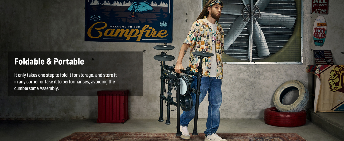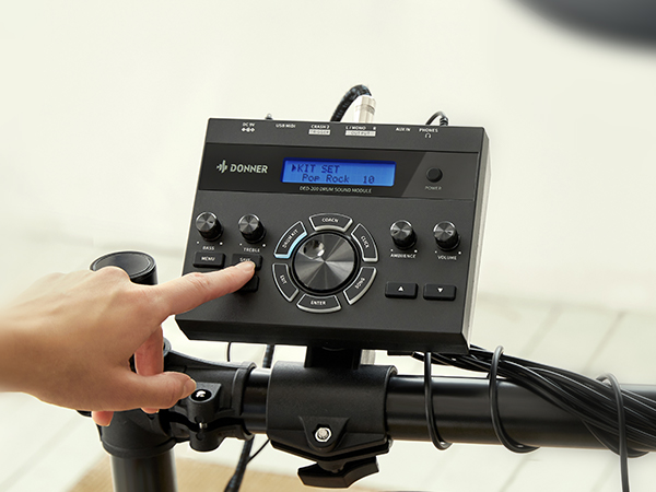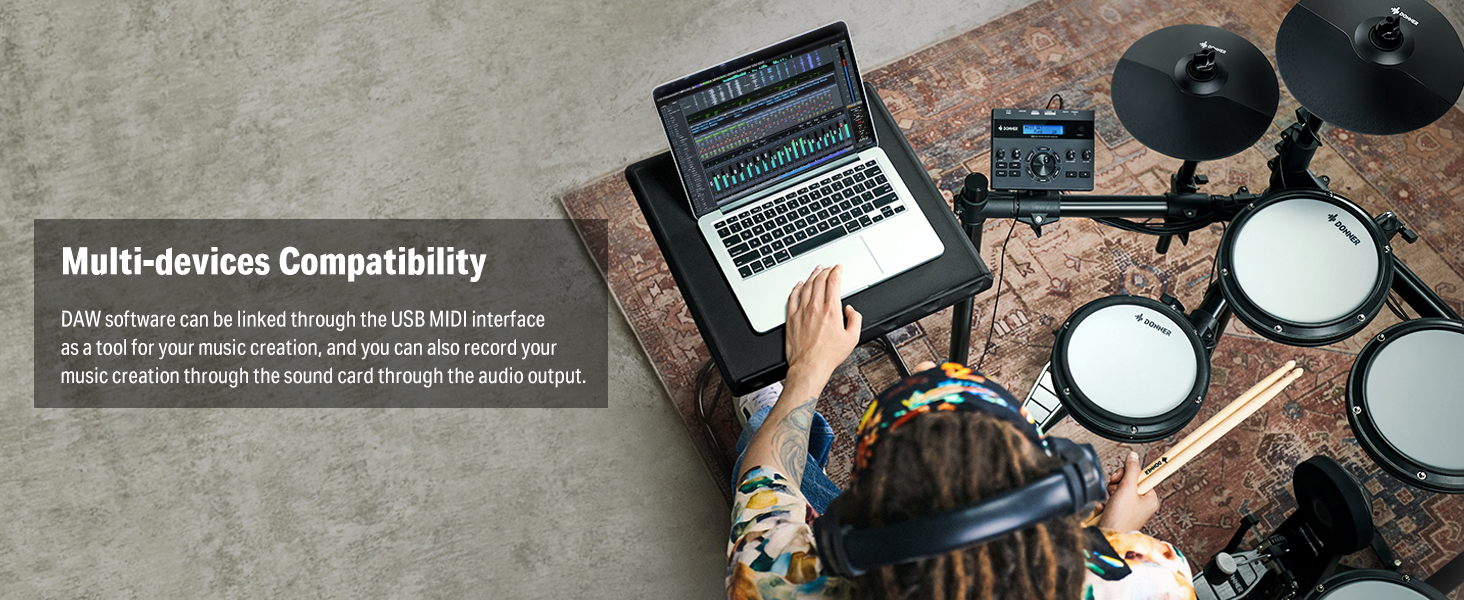 【 High-Quality 8-Piece Drum Set 】The DED-200 electric drum set includes 1 x 8" dual-zone mesh snare, 3 x 8" mesh tom-tom, 1 x 6" kick drum with double-pedal compatibility, 1 x 10" hi-hat, 1 x 10" crash, and 1 x 10" ride with w/choke, all with stable and evenly distributed tone responses due to the premium silicone pads in sleek black.