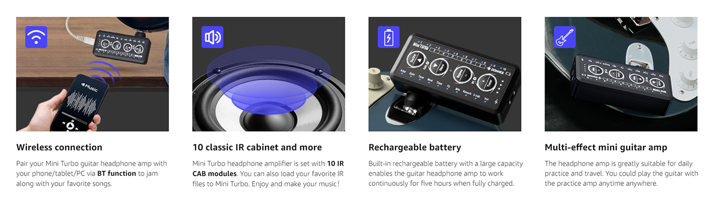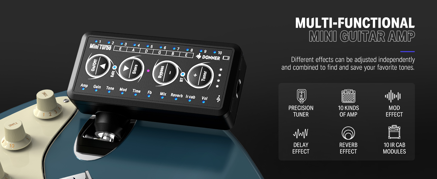 【 Multi-Effect & Excellent Timbre 】The pocket amp contains 10 classic presets (including delay, reverb, chorus, and phaser) and 10 classic IR CAB modules, easy for you to start playing. While the edit mode enables you to adjust and save your favourite tones. Diverse effects and high-quality performance in timbre are suitable for various music styles.
