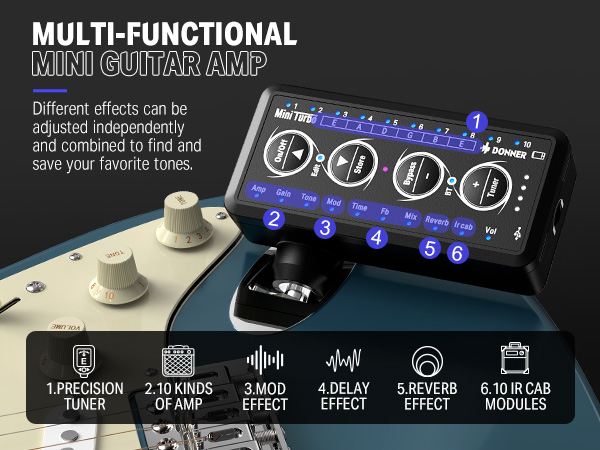 【 Advanced Design 】The pocket guitar headphone amplifier is so lightweight and portable that it is easy to carry-on and could be used in various environments including your home, apartment, or on the journey. The high-quality and durable construction of mini tuner is your faithful guitar partner. Plug and play, immerse in music! No more worry about being disturbed or disturbing others.