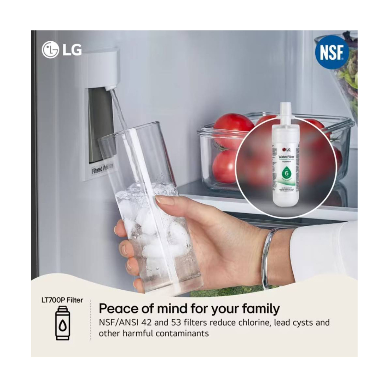 Enjoy cleaner, fresher-tasting water straight from your refrigerator with the LG LT700P Water Filter. Certified by NSF International (NSF 42), this genuine LG filter effectively reduces aesthetic impurities, giving you confidence in every glass you drink. Designed specifically for LG refrigerators, it ensures a perfect fit and reliable performance. Installation is quick and hassle-free, no tools required—so you can replace your filter in minutes and keep your appliance running at its best. with confidence and peace of mind.