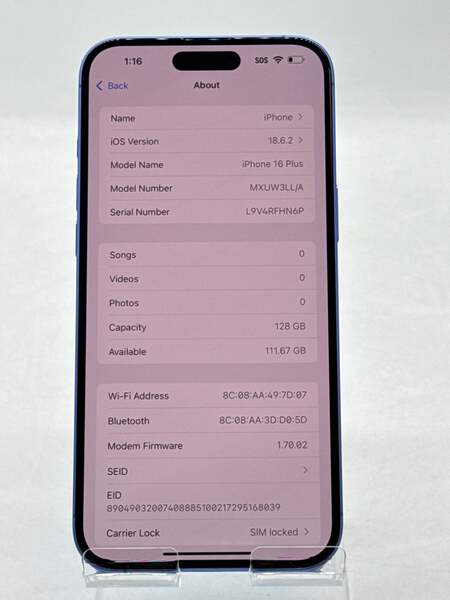 | Model | Apple iPhone 16 Plus |