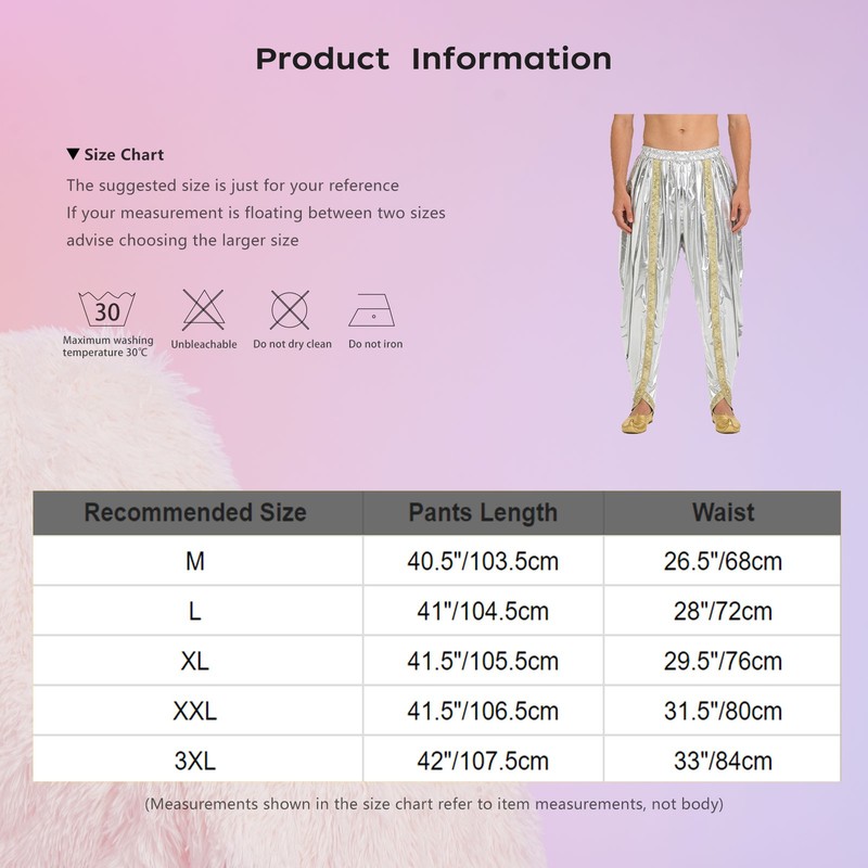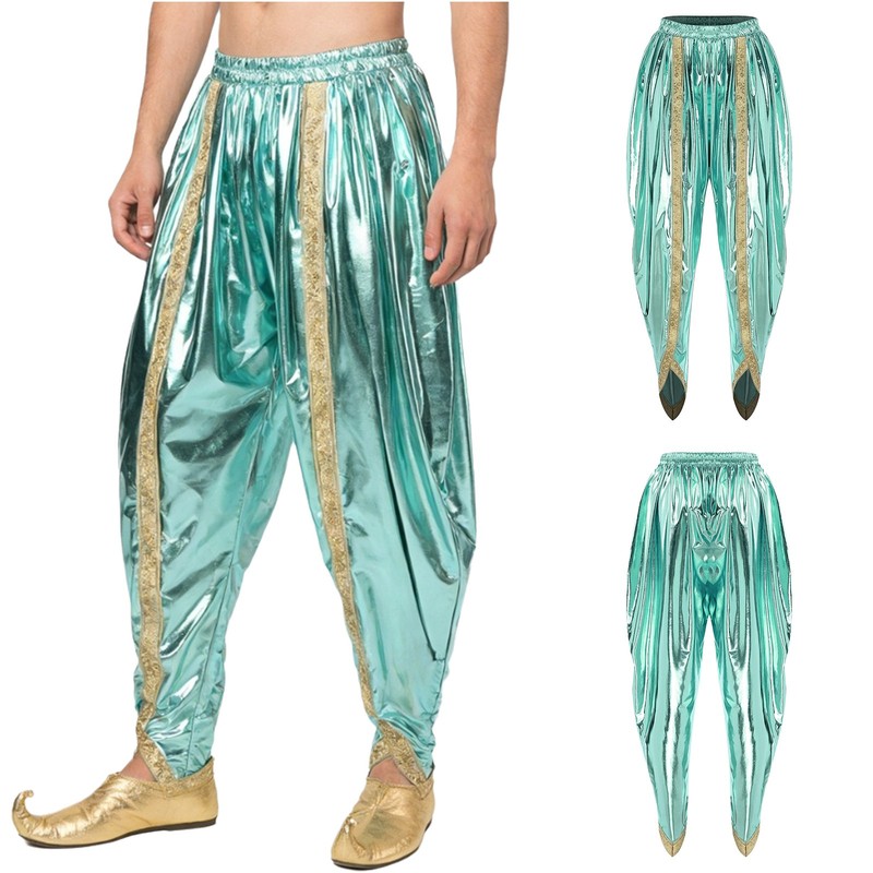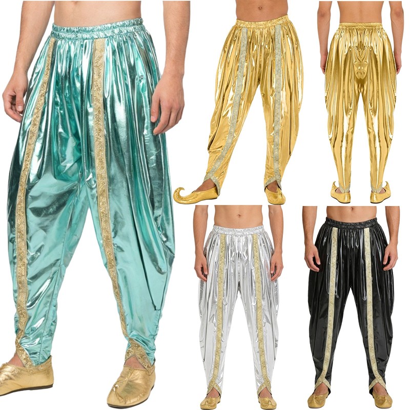 Mens Trousers Stage Performance Dance Costume Arab Princess Harem Pants Rave
