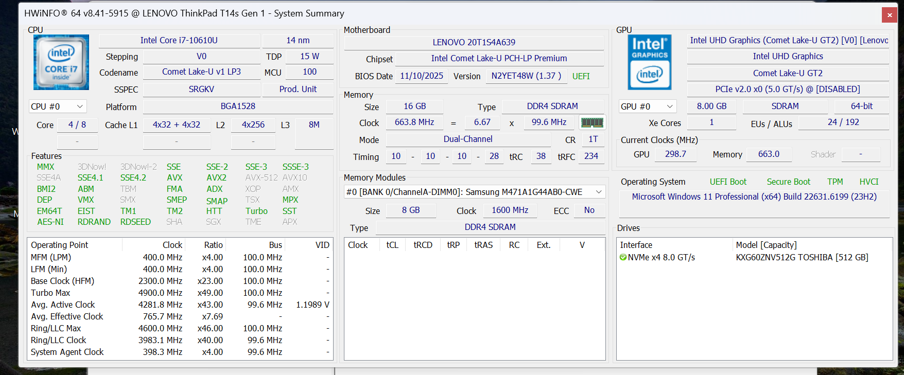 Laptop Lenovo ThinkPad T14s FHD 14 Zoll 512GB SSD Intel Core i7-10610U 16GB RAM