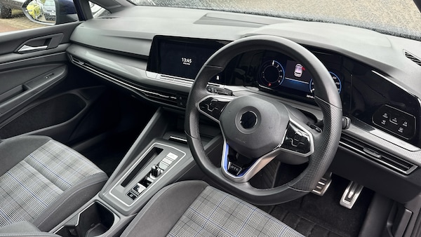 This new shape automatic plug in hybrid 272PS Golf has a full service history, and it is absolutely stunning finished in Atlantic Blue metallic paintwork.As standard, it comes with touch screen media with satellite navigation, Apple Car Play, Android Auto, Bluetooth and DAB radio, front and rear parking sensors, digital drivers cockpit, adaptive cruise control, lane assist, dual zone climate control with air conditioning, heated steering wheel, heated sports seats, keyless entry, auto lights and wipers, front fog lights, Smart Matrix LED headlights, honeycomb LED fog lights, dynamic indicators, 30 colour LED interior lighting, electronic handbrake, privacy glass, and much more.As a Volkswagen Approved used vehicle included is 1 year unlimited mileage Warranty, 1 year Roadside Assistance, independent vehicle history and mileage checks, comprehensive multi-point vehicle check, service history checks, plus 5 days complimentary Volkswagen Drive Away Insurance..Air Conditioning, Climate Control, Metallic Paint, Satellite Navigation, Alloy Wheels, Heated Seats, DAB Radio, Bluetooth, Parking Sensors, Full Service History, USB, Park Assist, Manufacturer Approved, Adaptive cruise, Keyless Entry-Push Button Start, Apple-Android Play, Auto Lights, Electric Folding Mirrors, Lane Keeping Assist, Pre Crash Prevention& Rain Sensors, Front + rear carpet mats, Heat insulating glass windscreen, Rain sensor, Front and rear electric windows, Heated rear windscreen, Rear windscreen washer and wiper with interval delay, Rear tinted glass 65% light absorbing from B pillar backwards, ABS, Rear disc brakes, Front disc brakes, Electronic parking brake with auto hold, ESC (Electronic Stability Control), Car2X communication, Wireless app connect, USB-C ports in the front and rear centre console with increased charging performance, Adaptive cruise control (ACC) with speed limiter and front assist (reacting to vehicles pedestrians and cyclists)