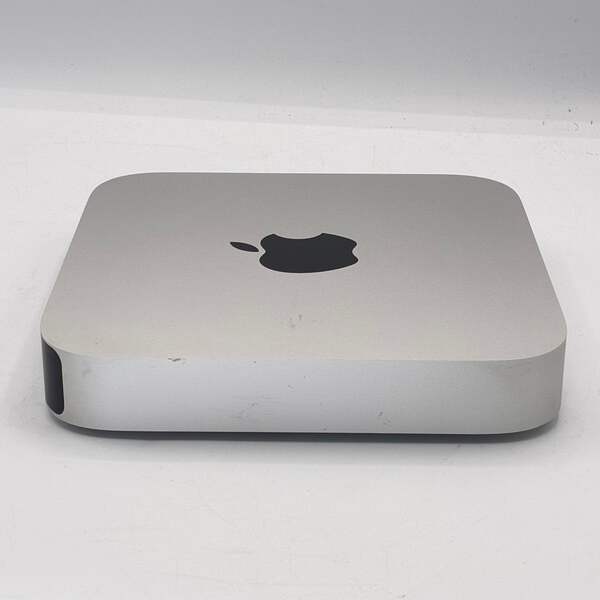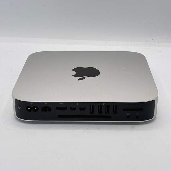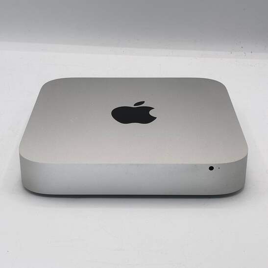 Apple Mac Mini A1347 2014 desktop computer in silver. This unit is listed in Uséd condition and includes the provided specifications of Core i5, 4GB RAM, and 500GB storage. Free shipping and returns are available, and the return policy is a 30 day eBay return policy with seller-paid return label.