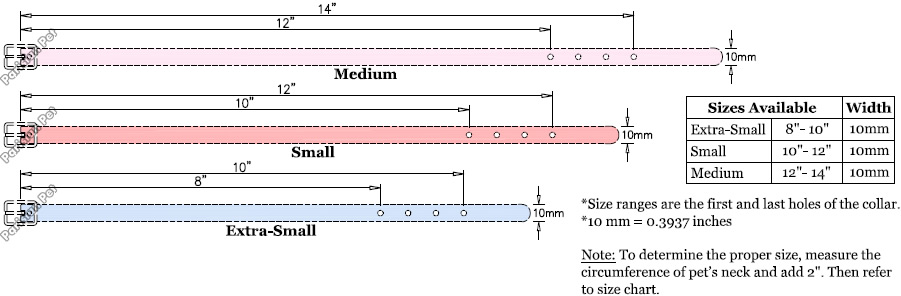 In order to provide you with an excellent service, please follow these instructions below when you purchase a collar: 1. Buy the listing. 2. To determine the proper size, measure the circumference of pet’s SNUG neck and add 2" for proper fit and comfort. For small breeds, only add 1.5 inches to SNUG neck measurement. Please refer to diagram above for exact collar dimensions. 3. Copy and paste the following information in a message directly through Paypal or send us an eBay message with the details for your collar: