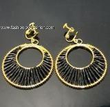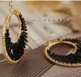 Earring Option 2: Black Beaded Hoop Dangles, Goldtone, 1 7/8" (5cm) in length