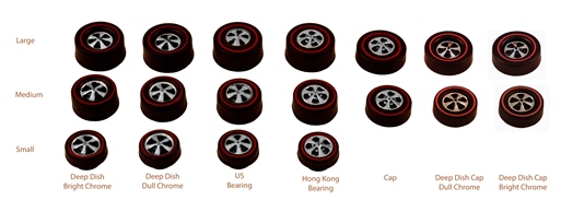 We've gone through great effort to replicate each type of wheel from the first 5 years of Redline production. Hong Kong Bearing wheels are the most common wheels from 1968 & 1969. These highly detailed and brilliantly shiny wheels give off the classic Redline look. Deep Dish Bearing wheels originally came on the early cars in 1968. The Deep Dish wheels have a great profile because the mag is inset from the wall of the tire, just like a real car. The Deep Dish wheels were only produced early on in the first year, and replaced with the Hong Kong Bearing wheels. The early cars came with two sizes of Deep Dish wheels; small and medium. We actually offer the legendary Deep Dish wheels in the LARGE size wheel! It was never produced this way, and collectors have always tried to imagine what their Hot Heaps and Spoilers and Indy Cars would look like with this size Deep Dish wheel! Now the fantasy is reality for everyone! Cap style wheels made their way into production Redlines in 1970 and continued through 1972. The face of the Cap style wheel looked very much like the Hong Kong bearing wheels, however they attached to the axle system differently. After many requests, we have engineered Deep Dish Cap wheels that are just awesome! When installed on a car that takes Cap wheels, the car takes on the wheel profile of the Deep Dish wheels on the very early cars from 1968. Free Shipping to Anywhere in The US!Satisfaction Guaranteed!These wheels are just exquisite! Check out my feedback to see what other people say about the wheels and my service. If you have bought reproductions from someone else and have been disappointed, I guarantee that will not be the case with these wheels. If you are not happy for any reason, I will take them back for a full immediate refund or exchange. Want more information on which wheels go on which castings? Click on the link below and you can explore our famous Wheel Matrix. It details all castings from 1968 though 1972 and identifies the wheels specific to the castings.
