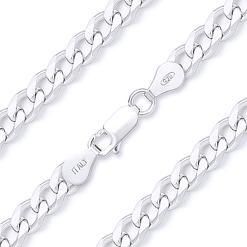 The featured Italian-made chain necklace is made up of classic 3.7mm curb links cast in solid .925 sterling silver then finished with a lobster clasp for secure wear.