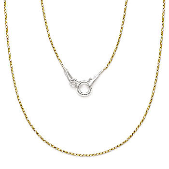 0.7mm Thin Snake Link Italian Chain Necklace in 2-Tone .925 Sterling Silver w/ 14k YG & Rhodium