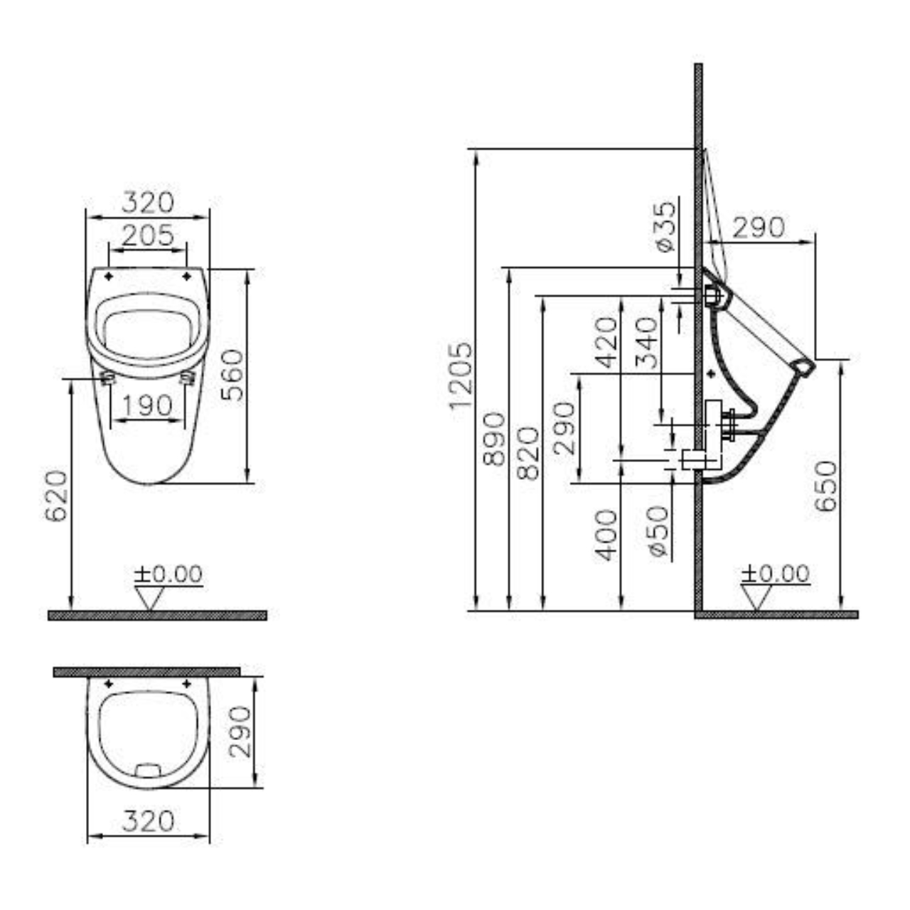 zur Montage von Urinalen