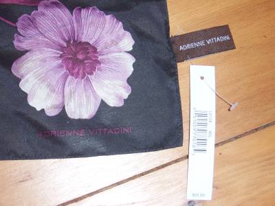 Adrienne VittadiniDark Brown with Lavendar Flowers Scarf 100% silk Measurements: 34" x 34" squareMade in ChinaNew with tag