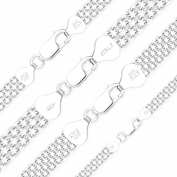 Multi-Line Bismark Link Italian Chain Necklace in Solid .925 Sterling Silver