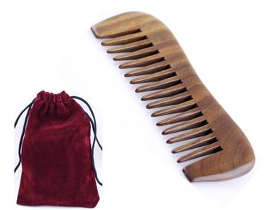 1 Green Sandal Wood Hair Pocket Comb Message Travel with Gift Bag