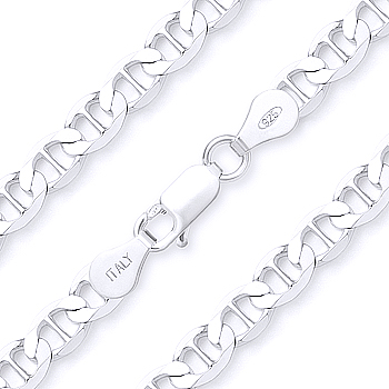 6.3mm Marina / Mariner Link Italian Chain Bracelet in Solid .925 Sterling Silver