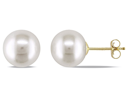 Radiate your feminine glow with these elegant Amour Collection Pearl Stud Earrings. Crafted in glittering yellow gold, they feature two 8-8.5mm white round freshwater cultured gleaming pearls. Enhanced with a high-polish finish, these pearl stud earrings secure with butterfly closures. These pearl earrings are a classic addition to any jewelry collection and are perfect for any occasion.
