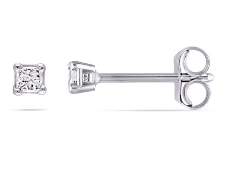A beautiful gift to say "I love you", these dazzling Amour Collection Solitaire Earrings will lend an eye-catching touch of sparkle to your look. Crafted in lustrous white gold, the earrings feature 2 princess-cut, prong-set white diamonds (J-K, I2-I3) and are secured with butterfly back closures.