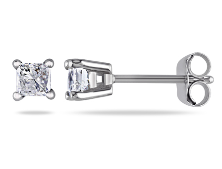 A gorgeous expression of your devotion, these classical Amour Collection Diamond Solitaire Stud Earrings are crafted in lustrous white gold. These attractive earrings feature two princess-cut, prong-set diamonds (I-J, I2-I3). These earrings are secured with butterfly closures.