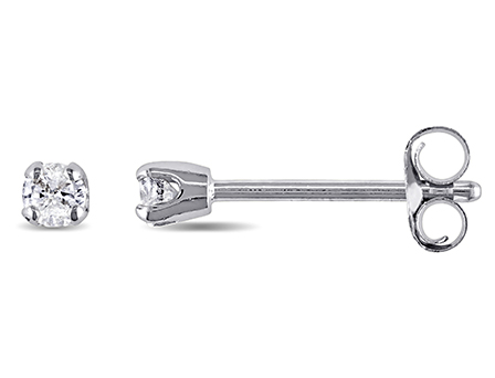 Present your loved with these beautiful Amour Collection Diamond Solitaire Earrings in lustrous White Gold. These earrings feature 2 round-cut, prong-set white diamond accents (I-J, I2-I3) and are secured with butterfly back closures.