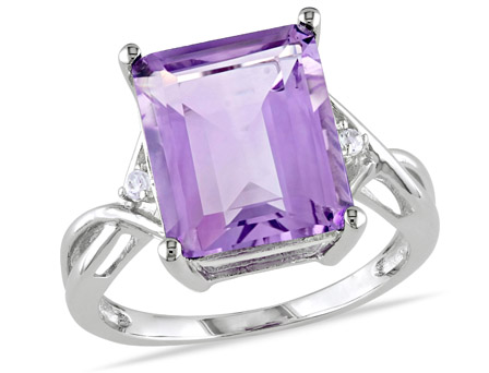 Show how devoted you are with this Amour Collection Amethyst and White Topaz Cocktail Ring. Crafted in flickering sterling silver, it features an emerald-cut, prong-set amethyst gemstone (12 x 10mm) at the center with a round-cut, prong-set white topaz gemstone on either side. Enhanced with a high polish finish, this gemstone cocktail ring will be a memorable and timeless gift for yourself or your special someone.
