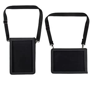 The tablet sling features thick reinforced Neoprene padding that helps absorb shock from dings and bumps, while also withstanding the abuse from daily wear-and-tear. The rugged yet flexible material of the tablet carrying case fits like a glove, snugly conforming to your gadget's shape. The elastic neoprene sides of the case stretch to allow for the accommodation of tablets of various thicknesses, securing the tablet in place. Access to the tablet’s charging and headphone port is through the hook-and-loop access flap. The built-in clear zippered pocket is ideal for storing small accessories like headphones, styluses, or other portable items.