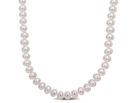 Add a vintage accessory to your collection with this classic Amour Collection Single Strand Necklace. Crafted in sparkling sterling silver, this elegant necklace features a strand of cultured freshwater pearls (5-6mm). Polished to a brilliant shine, this ravishing 18-inches necklace is comfortably secured with a fish eye clasp. A perfect accessory for every occasion.
