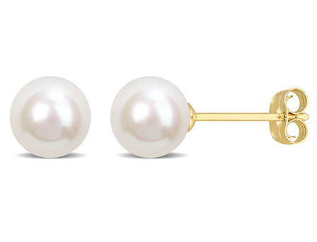 A simple yet beautiful choice, these marvelous Amour Collection Pearl Stud Earrings are a great gift for any occasion. Crafted in yellow gold, these earrings feature lustrous white round cultured freshwater pearls (6-6.5mm) and are secured with butterfly-back closures.