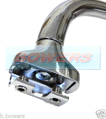 Clamp on fitting includes grub screws, allen key & rubber mounting gaskets