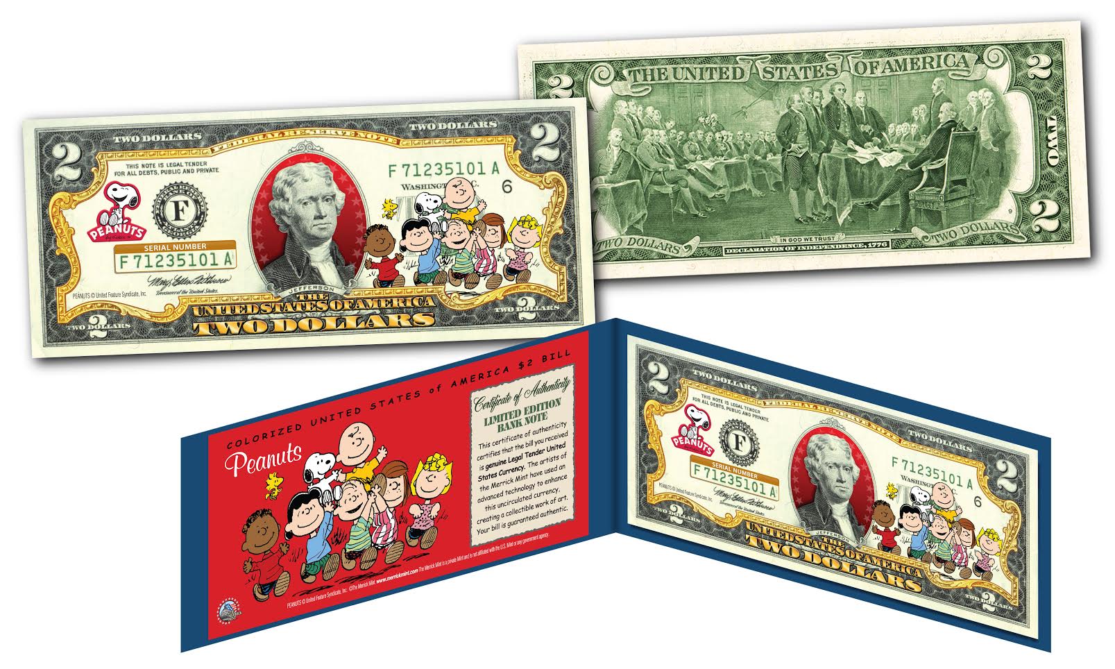 PEANUTS - CHARLIE BROWN - SNOOPY *Americana* Legal Tender US $2 Bill *Licensed*