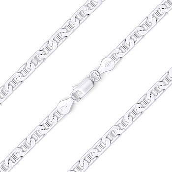 3mm Flat Marina / Mariner Link Italian Chain Necklace in Solid .925 Sterling Silver