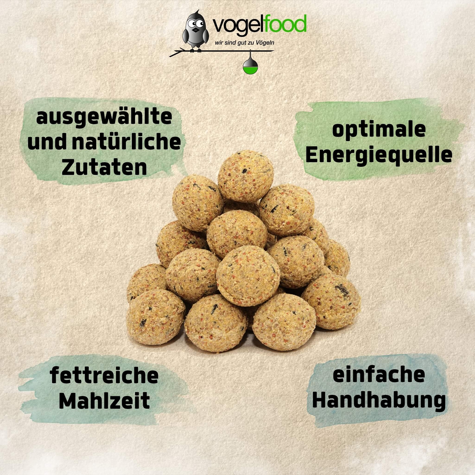 Leicht verdaulich für JungvögelDie zarten Körner und Fette in unseren Meisenknödeln sind leicht verdaulich und eignen sich daher besonders für junge Vögel, die nach Nahrung rufen und eine nährstoffreiche Ernährung benötigen. |