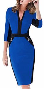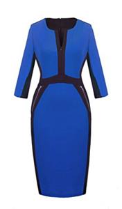 Elegant Fashion Colorblock Style, V neck, 3/4 Sleeve, Slim Optical Illsuion, Zipper Back, Normal Elasticity, Knee Length Midi, Suitable to wear, Fit for many occasions like work, party, formal occasions, and so on.