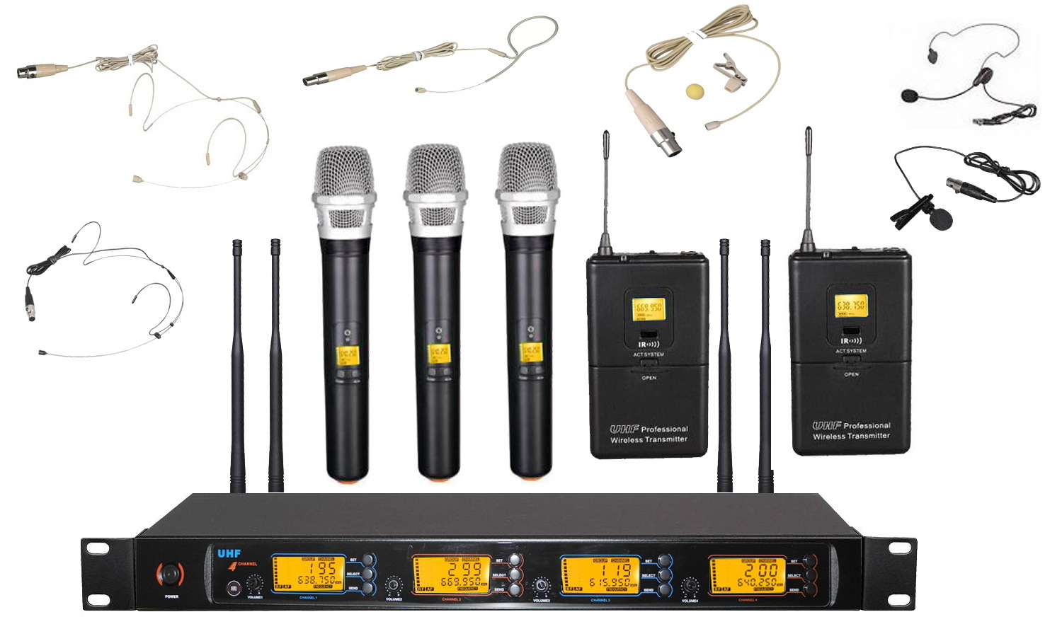 4. 4 Bodypack transmitter with 4 Headset mic.