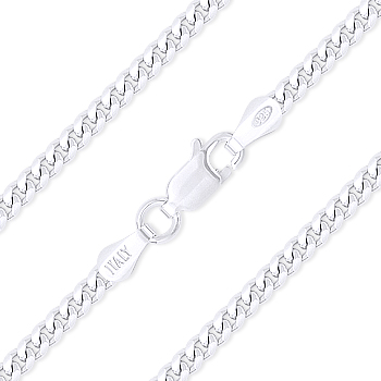 The featured Italian-made 3.3mm thin chain necklace is made up of Miami-Cuban curb links cast in solid .925 sterling silver. The necklace is then finished with a lobster-claw clasp for secure wear.