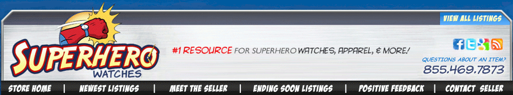 We would like to thank all of our customers that we have had the pleasure of serving through the years. We treat our customers as good friends and we have established many friends through our 10 years of selling watches and other superhero merchandise. At Superhero Watches, we promise to ship you quality items in a prompt manner. Please feel free to contact us with any questions that you might have and please know that at Superhero Watches we aim to be your #1 Resource for Superhero watches, apparel, and more!