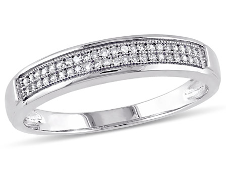 Express his importance in your life with this classic Amour Collection Men's Anniversary Ring. Crafted in lustrous white gold, this stylish ring showcases 44 round-cut, pave-set diamonds (G-H, I2-I3) placed in two parallel rows. Enhanced with a high polished finish, this exquisite ring will make him feel like the luckiest man. A perfect way to show him your commitment.
