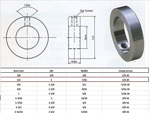 Jeremywell 1/2" Bore Solid Zinc Shaft Collars Set Screws OD 1" (4 PCS)