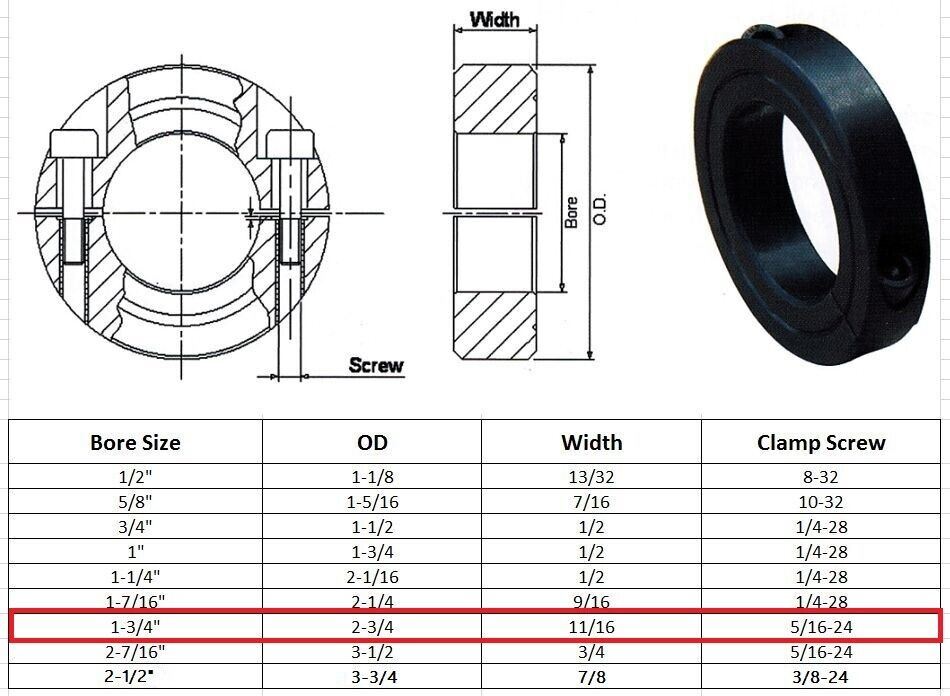 Jeremywell 1-3/4" Bore Double Split Set Screw Shaft Collar OD 2-3/4" (2 PCS)