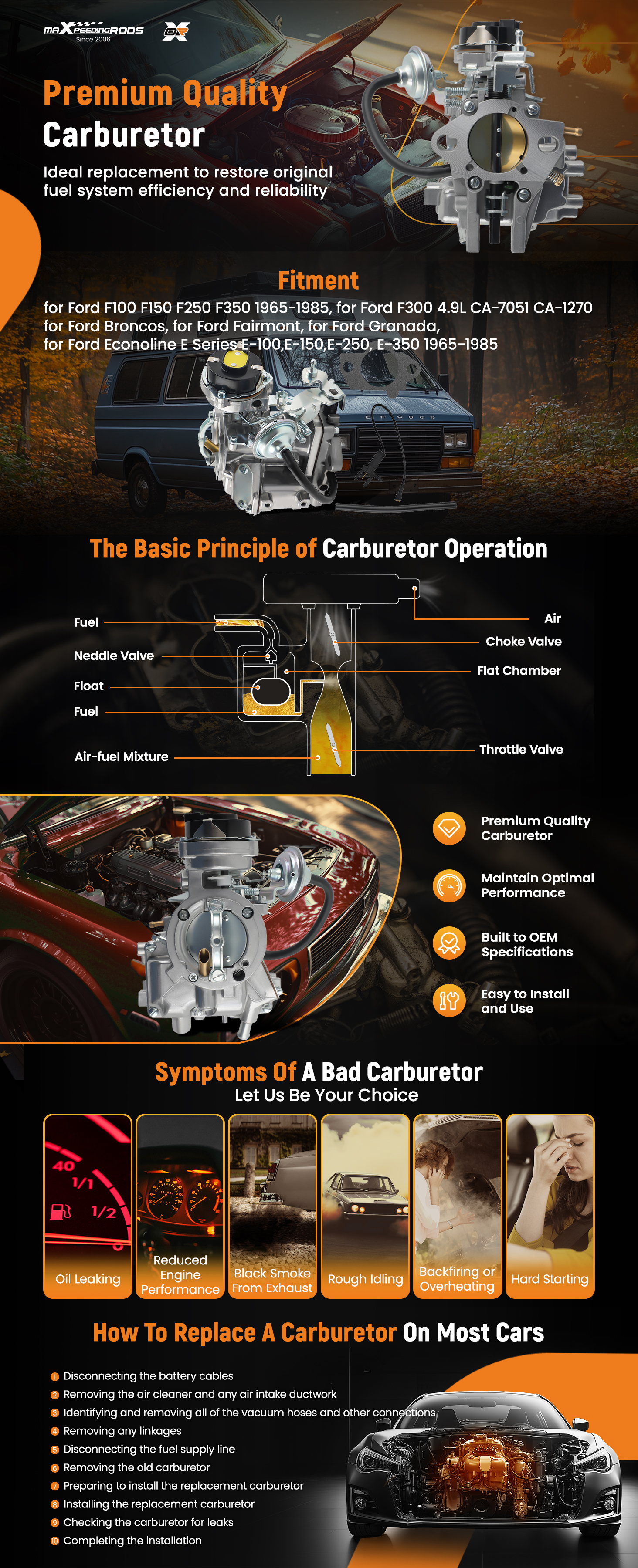 for Ford E-150 Econoline 4.9L 300Cu 1965-1985