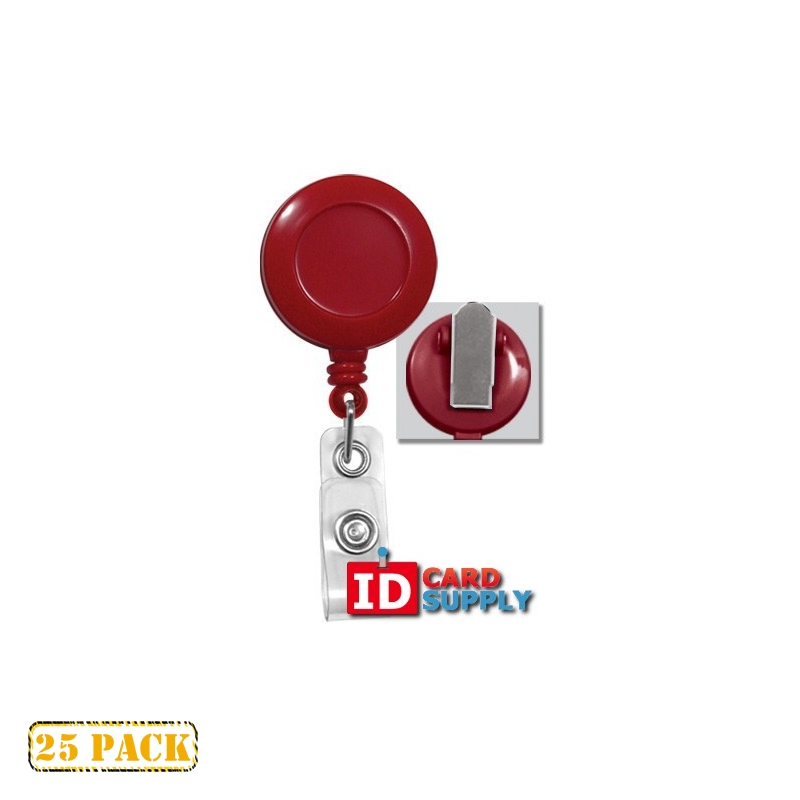 25 x Red Badge Reel With Clear Vinyl Strap & Swivel Spring Clip
