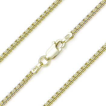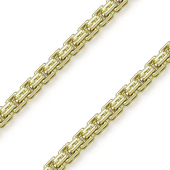The featured Italian-made 1.3mm chain necklace is cast in .925 sterling silver and showcases box links with channeled gaps at the center. The chain is then plated with 14k yellow gold and finished with a lobster-claw clasp for secure wear.