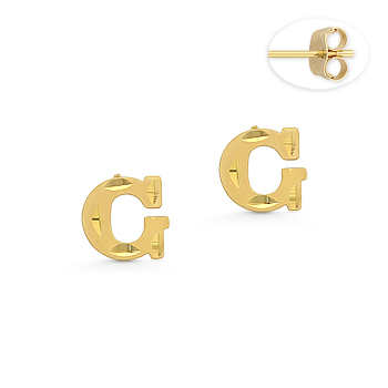 Initial Letter "G" Stud Earrings with Push-Back Posts in 14k Yellow Gold