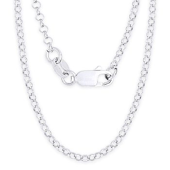 The featured Italian-made chain necklace is cast in .925 sterling silver and showcases 1.9mm flat rolo cable links finished with a lobster-claw clasp for secure wear.